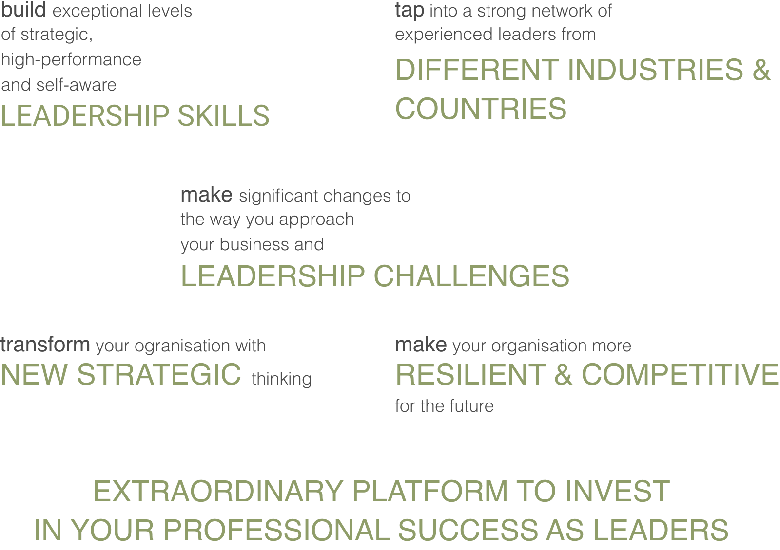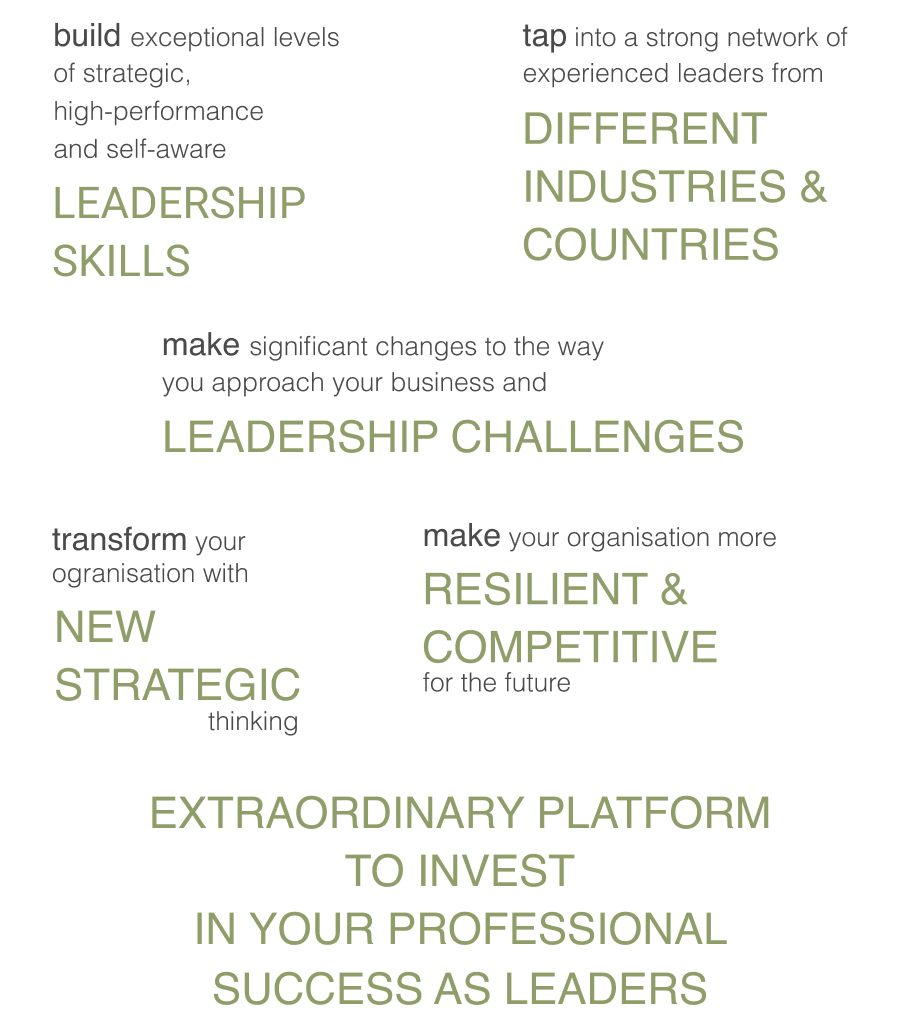 Collaboration in groups between top executives from different industries and continents to co-create an action plan on a concrete business case to: